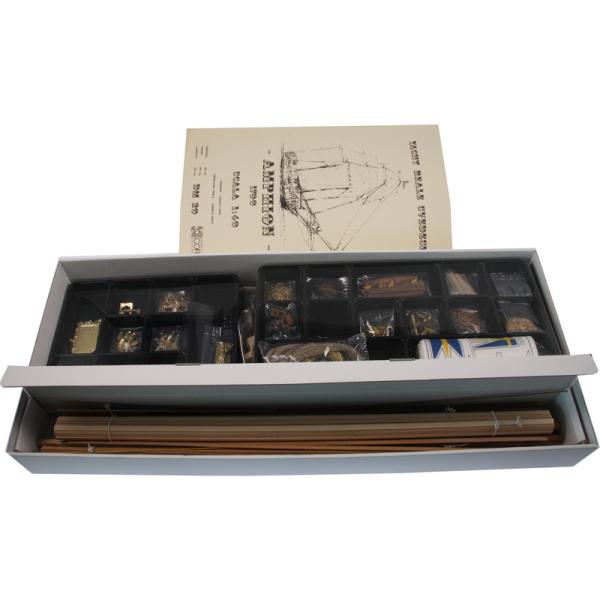 Charakteristika:Stavebnice neplovoucího modelu COREL Amphion v měřítku 1:40 z roku 1778. Stavitelem lodi byl Frederik Chapman, pro švédského krále Gustava III. navrženo a postaveno v loděnici Djurgarden ve Stockholmu. V balení jsou dřevěné díly, lišty a množství kování, lanoví, plachty, plány atd.
