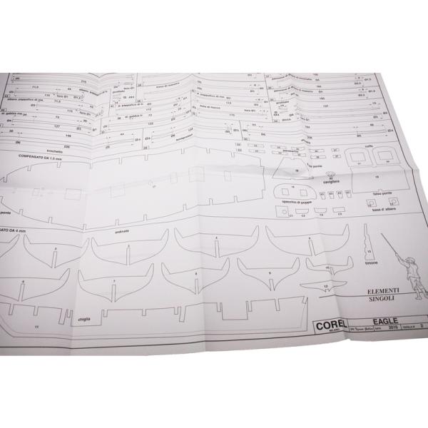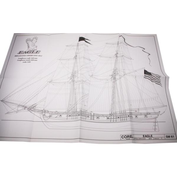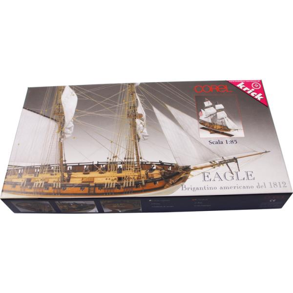 Charakteristika:Stavebnice neplovoucího modelu COREL Eagle briga v měřítku 1:85 z roku 1812. USS Eagle, šalupa, byla obchodní lodˇ, zakoupená ve Vergennes, Vermont na jezeře Champlain v roce 1812 a vybavena pro námořní službu. Plán je velmi detailní, v balení jsou dřevěné díly, lišty a množství kování, lanoví, plátno na plachty a další.