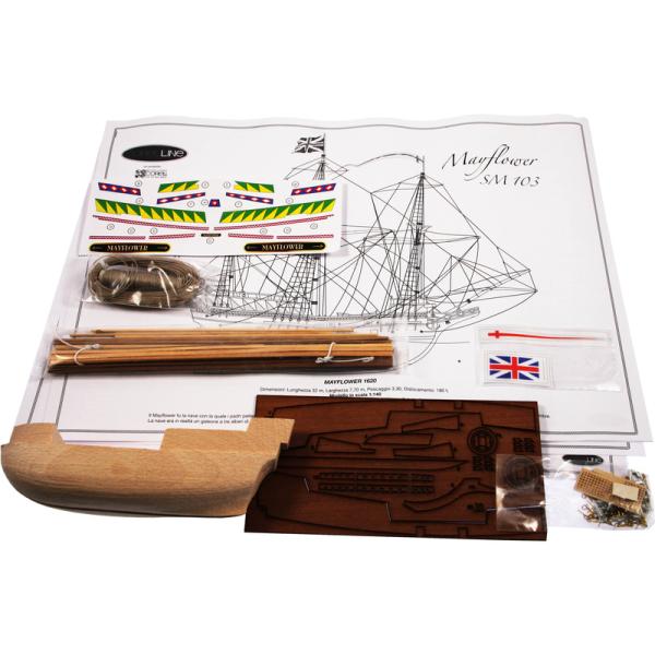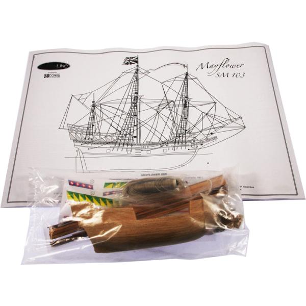 Charakteristika:Stavebnice neplovoucího modelu COREL Mayflower v měřítku 1:140 z roku 1609. Mayflower posloužila anglickým puritánům, na cestě do nového světa v roce 1620. V balení jsou dřevěné díly, lišty a množství kování, příslušenství, velké stavební plány v měřítku 1: 1 a mnoho perspektivních výkresů usnadňují montáž. Určeno i pro méně zkušené modeláře.