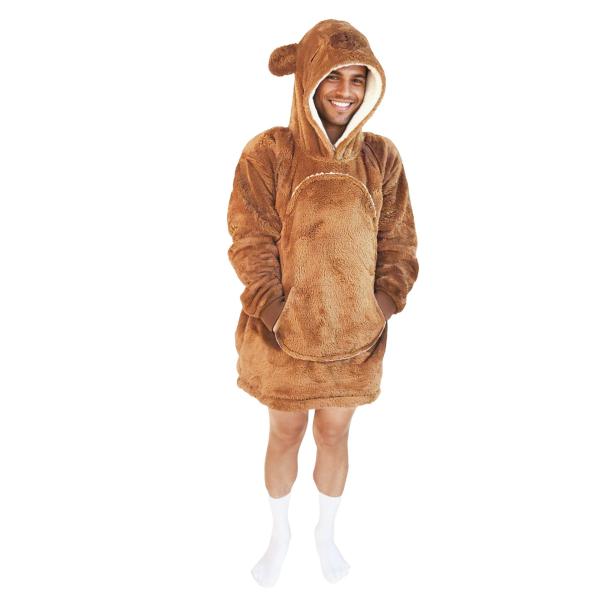Stručný popis a doplňující informace:• praktická mikina a deka v jednom• velká kapuce s motivem zvířátka• velké přední kapsy na zahřátí rukou• super měkký a nadýchaný hřejivý materiál pro maximální teplo a pohodlí• vnitřní i vnější využití (gaučování, práce na PC, stanování atd.)