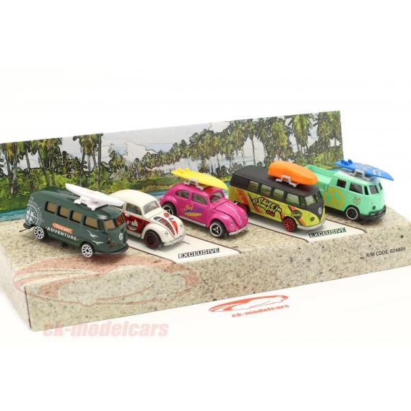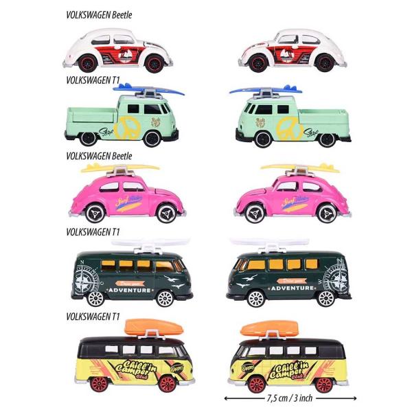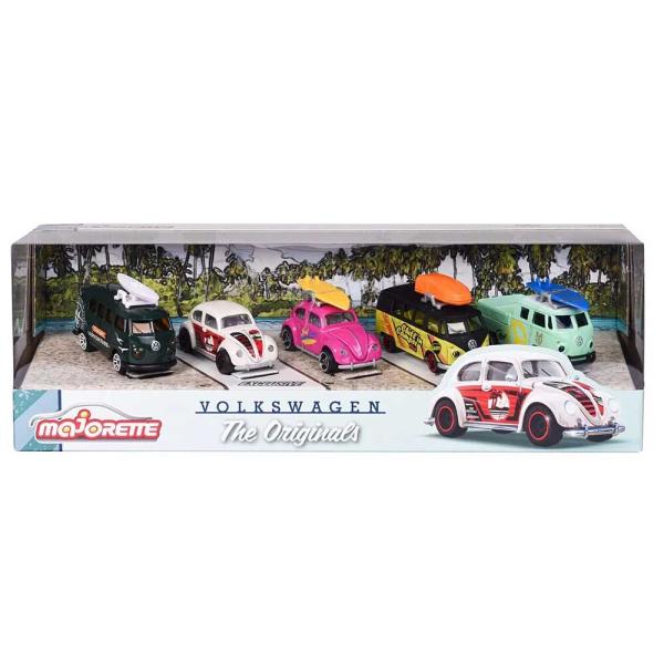 Dárková souprava s 5 kovovými modely autíček oficiálně licencované Volkswagenem, dva exkluzivní modely, s pohyblivými/otevíracími částmi, pro volnoběh s odpružením. V měřítku 1:64 Délka 7,5 cm Vhodné od 3 let