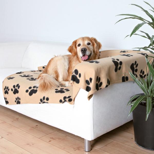 Deka z teplého fleecu pro psy. Chrání nábytek před nečistotami a chlupy od psů. Z kvalitního materiálu Velikost 150 x 100cm Barva béžová Se vzorem kůstek Lze prát v pračce