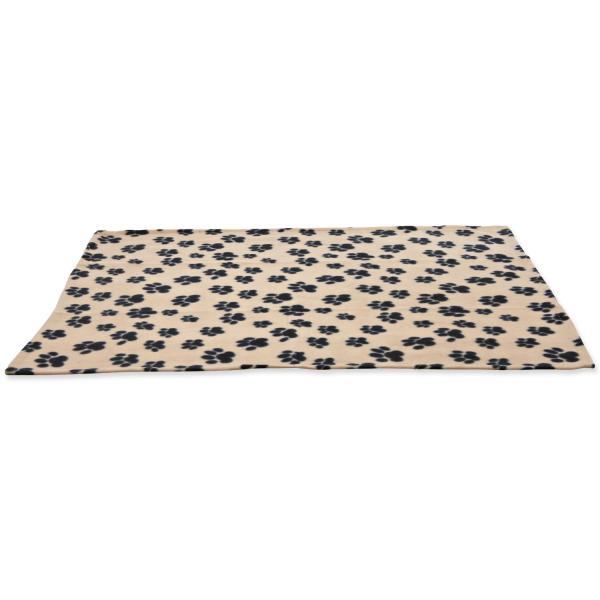 Deka pro psy. Chrání interiér před nečistotami a chlupy. Z kvalitního fleecu Barva béžová Velikost 100 x 70cm Se vzorem kůstek Lze prát v pračce