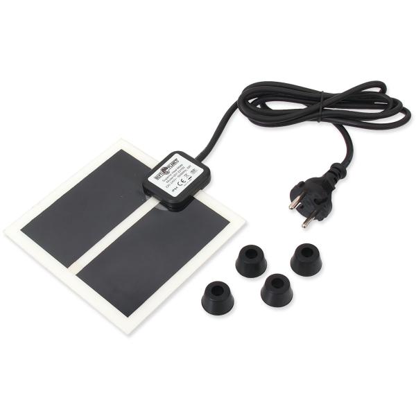 Topná deska, která se lepí na spodní stranu terária. Velikost: 14 x 15 cm. Terárium se zvedne pomocí samolepících nožiček, které jsou součástí balení az vnější strany nalepíte topnou desku. Vhodné pro terarijní zvířata a některé malé domácí mazlíčky Produkuje přirozené teplo pro zahřátí zvířat Může být umístěna pod dnem nebo na straně terárií . Účinně zlepšuje chuť k jídlu a zlepšuje metabolismus. Topný prostor by měl být menší než 2/3 plochy Vyhřívá max. na 45°C (teplota desky) – samotná výhřevnost záleží na tloušťce a typu substrátu v teráriu