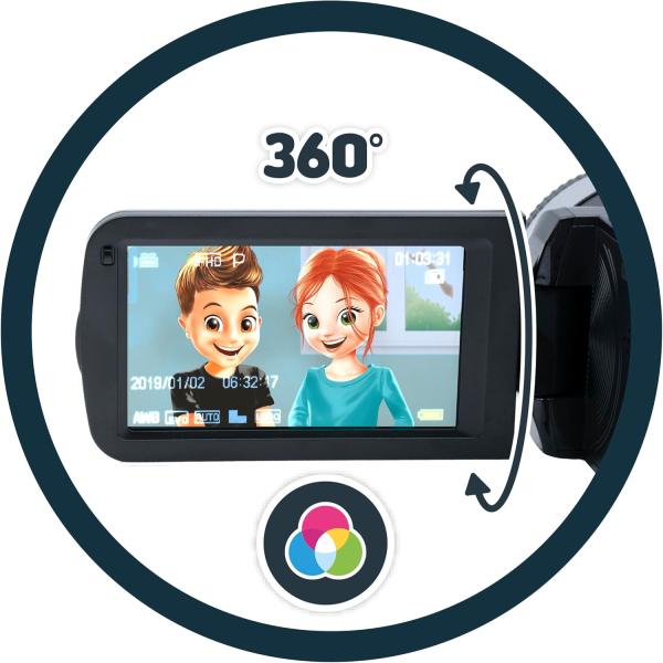 Skvělá kvalita obrazu: S 7,5 cm HD obrazovkou a otočným displejem mohou děti jednoduše přejít do selfie režimu. Zachycování záběrů nikdy nebylo zábavnější, s možností videa v rozlišení 1080p a fotografií s kvalitou až 24 megapixelů.