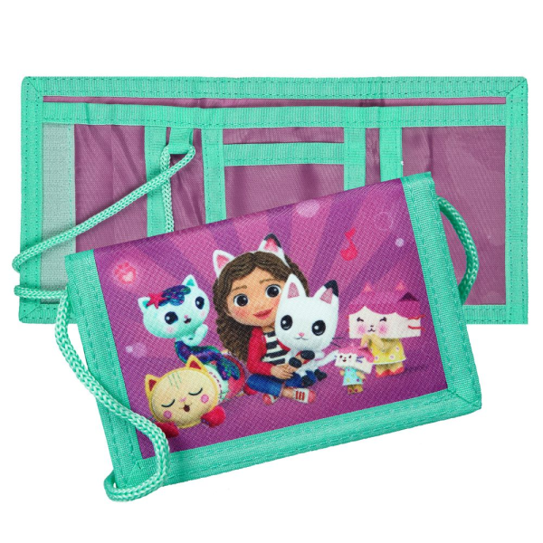 Na přední straně se nachází ilustrace Gabby s jejími přáteli. Peněženka je skládací a uzavírá se na suchý zip.