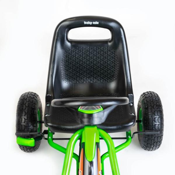 TECHNICKÉ ÚDAJE:Délka 94 cmVýška 63 cmŠířka 61Výška opěradla 33 cmRozměry sedadla 34 x 28 cmVýška od sedadla k zemi 26,5 cmVzdálenost od sedadla k pedálu (blíže k sedadlu) 23 – 33 cmVzdálenost mezi sedadlem a pedálem (sedadlo více vzadu) 22 – 34 cmPrůměr kola 25 cmŠířka kola 8 cmPrůměr volantu 21 cmMaximální zatížení až 30 kgHmotnost 11,7 kg