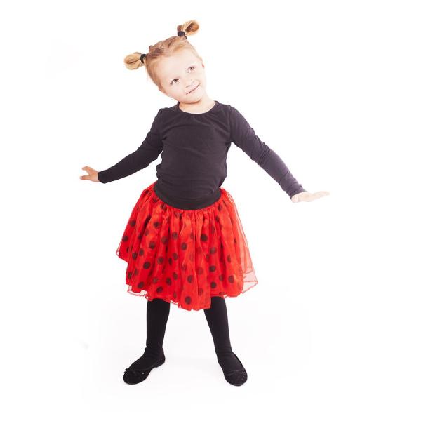 Roztomilá sukýnka pro všechny malé holčičky! Sukně červené barvy je určena pro dívky ve věkovém rozmezí 3-10 let . Balení obsahuje nadýchanou červenou sukýnku zdobenou černými tečkami. Sukně je v pase na gumu a její délka je cca 30 cm.