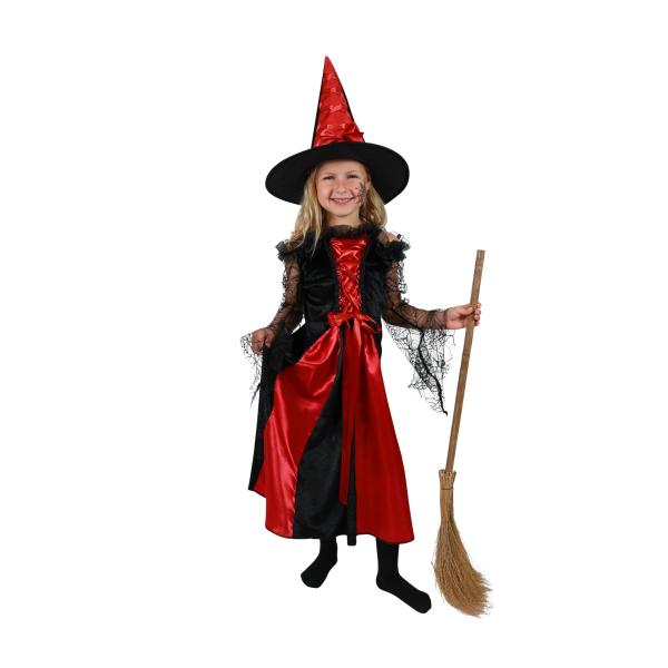 Dětský kostým čarodějnice v černo-červené barvě s pavoučími rukávy a stylovým kloboukem přinese vaší holčičce radost a kouzelnou atmosféru! Ideální pro karnevaly a Halloween, tento kostým podpoří její fantazii a kreativitu.