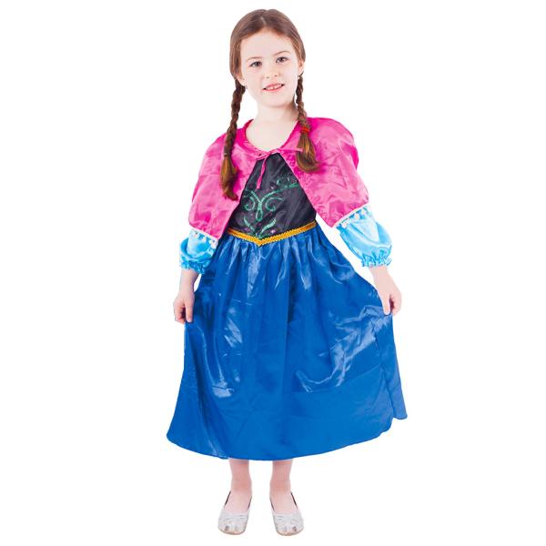 Nádherný dívčí kostým pro všechny sněhové princezny! Kostým ve velikosti M je určen pro holčičky ve věkovém rozmezí 6-8 let (110-128 cm). Velikost se může lišit od vyobrazení na obalu. Kostým je ušit v černo-modrých barvách, v horní části je zdoben potiskem, zlatým lemováním kolem pasu. Součástí je také růžový plášť na mašličku.