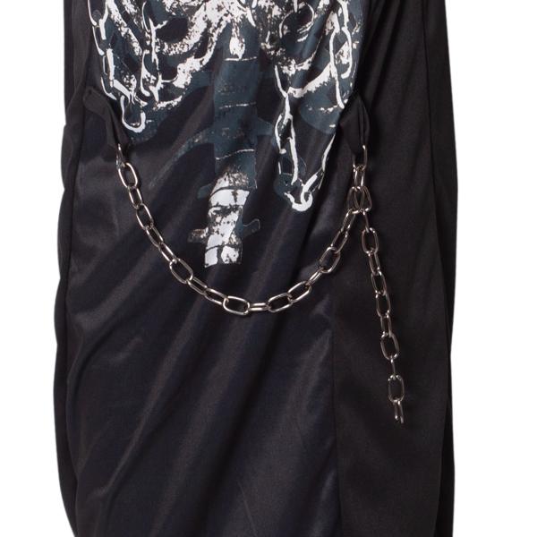 Balení obsahuje černou kombinézu s bílým potiskem kostry a kapucí na hlavu. Ideální na oslavu Halloweenu.