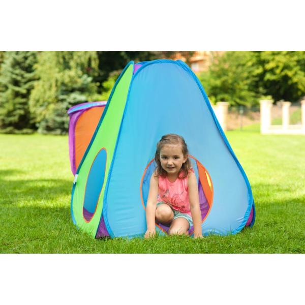 Krásný dětský stan Baby Mix 3v1 je trojdílnou sadou, skládající se ze dvou samostatných stanů propojených plazícím tunelem. Pro celý komplet, oba stany i tunel, je typické rychlé a jednoduché rozložení i složení. Díky tomu můžete dětem postavit tuto skvělou prolézací sestavu kdekoli a doslova za pár sekund.