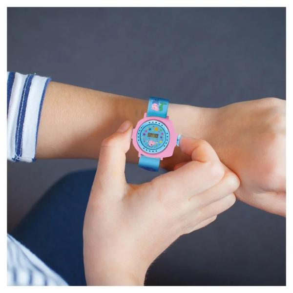 Vdechněte svému dítěti život oblíbeným dobrodružstvím Prasátka Peppy s těmito hodinkami 2 v 1 s projektorem Prasátka Peppy. Tyto zábavné a vzdělávací dětské náramkové hodinky jsou ideální pro mladé fanoušky a promítají 20 různých obrázků Prasátka Peppy, čímž pomáhají dětem podnítit fantazii a zároveň se učit určovat čas. Díky přehlednému digitálnímu displeji, nastavitelnému řemínku pro větší pohodlí a magii Peppy na dosah ruky jsou to dokonalý dárek pro každého malého fanouška Prasátka Peppy!
