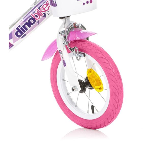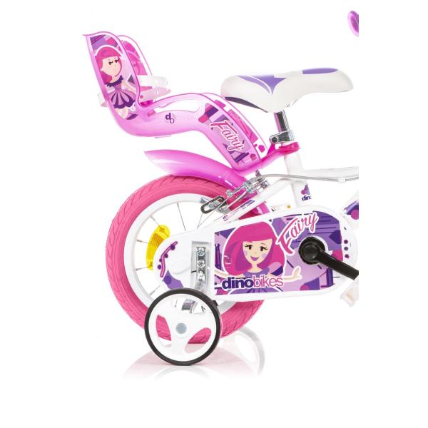 Dětský kolo Dino 12″, výrobce Dino Bikes Italy s sedačkou na panenku, je kolo pro malé cyklistky, které si chtějí s sebou vozit i svou oblíbenou panenku. Má kvalitní, vzduchem plněné pneumatiky s drátovým výpletem ráfků. Kolo má 2 čelisťové brzdy a zvonek. Středové složení má kuličková ložiska a volnoběh.