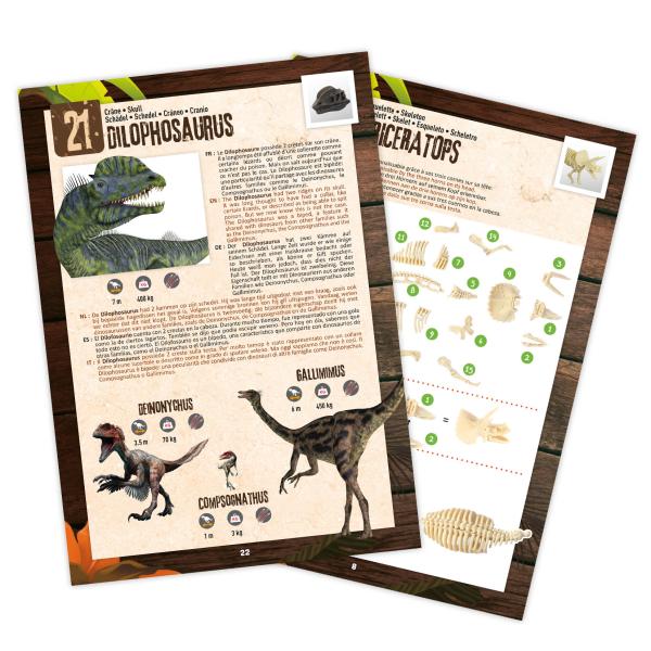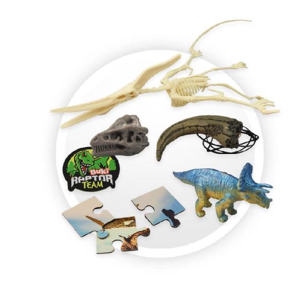 Vyberte si, v kterém objevíte své překvapení: odznaky, sklady, kostry na sestavení, figurky a zuby dinosaurů, z nichž objevíte náhrdelník.