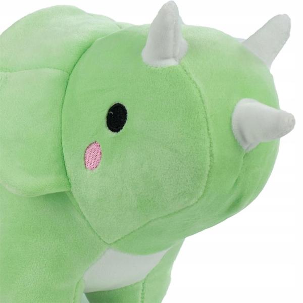 Tento plyšový Triceratops je roztomilý a věrný přítel, který z trojrohého dinosaura dělá dokonalého plyšáka na objímání. Jeho charakteristický límec a tři rohy jsou z měkkého plyše, takže jsou zcela bezpečné. Má baculaté tělo, jemnou srst a velké, přátelské oči, které mu dodávají extrémně milý výraz, a je připraven na všechna dobrodružství v dětském pokoji.