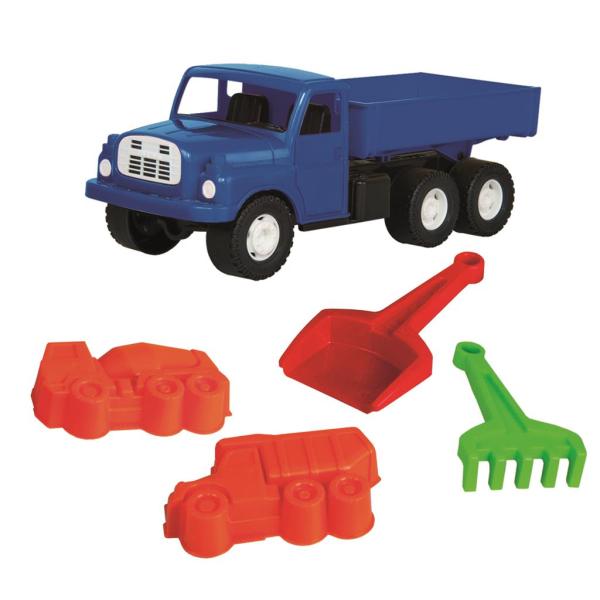 Stavět bábovky je dřina, avšak když vám s tím pomáhá Tatra 148 s přívěsem, je to brnkačka. Coby dvě bábovky se navíc v setu hraček na pískoviště představí ještě další náklaďák a jedna míchačka, takže se malý stavitel může skutečně činit. Nechybí ani hrábě a šikovně tvarovaná lopatka, s kterou se bezvadně hrabou písečné cesty. Auto má praktický rozměr 30 cm, který se vejde jak do klasické tašky, tak například do úložného prostoru pod kočárek. Navíc stačí připevnit provázek a děťátko si ochotně své náčiní ponese samo až na pískoviště.