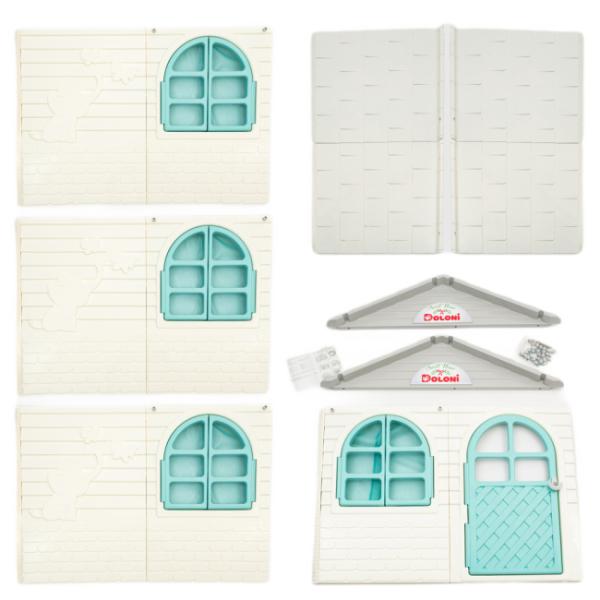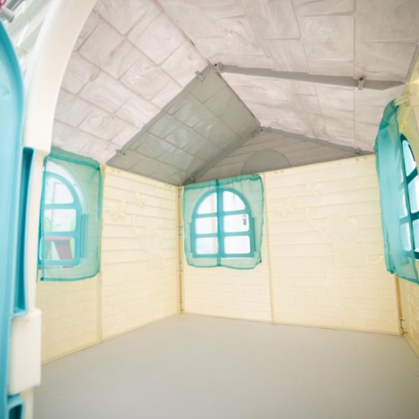 Domeček má čtyři okna s otevíracími okenicemi a závěsy, které umožňují regulaci světla a větrání. Navíc je vybaven otevíracími vchodovými dveřmi, které umožňují snadný přístup do interiéru. Je to ideální místo na hraní a trávení času na čerstvém vzduchu nebo v útulném interiéru domu.