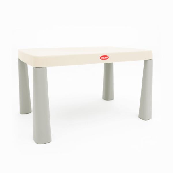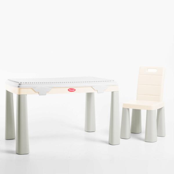 Sada 04660/10 v šedé barvě se skládá z plastového dětského stolu a jedné dětské židle. Židli lze použít jako taburet, protože opěradlo je zcela odnímatelné. Opěradlo lze vyměnit pomocí přiložené zátky.