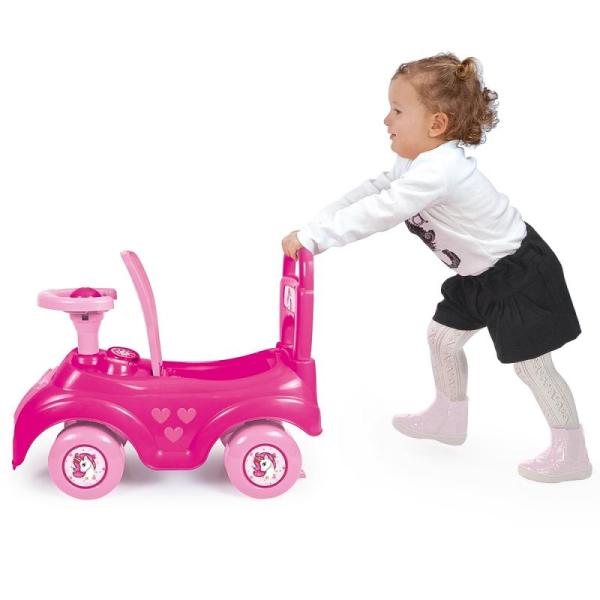 Růžové odrážedlo s jednorožcem je pomocníkem při prvních krůčcích vašeho dítěte. Poskytuje mu dostatečnou oporu a pomáhá naučit udrzet rovnováhu. Jízdy na Odrážedlo si dítě takové buduje svalovou hmotu. Vyrobeno z kvalitního a odolného materiálu. Na řidítka je houkačka se zvukovým efektem. Pod sedačkou naleznete úložný prostor. Dítě se Může pohodlně opře o zádové opěrátko nebe pomocí něj celé autíčko tlačit. Věk: 12m +. Rozměr: 37 x 48 x 21 cm. Váha: 1,55kg.