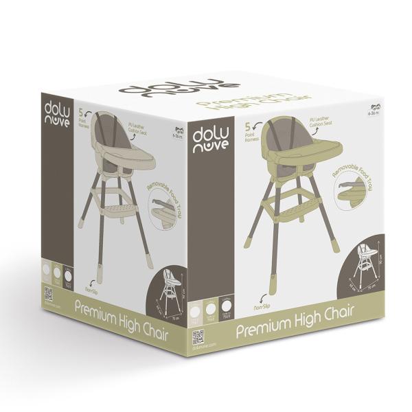 Prémiová židle má měkké sedadlo z PU kůže a odnímatelný jídelní tác, díky čemuž ji po každém jídle jednoduše vyčistíte. Sedadlo je vybaveno bezpečnostním 5-bodovým pásem a tác obsahuje praktický držák na pohár, který zabraňuje převrhnutí nápoje!
