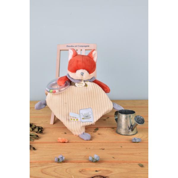 Chrastítko stimuluje smysly dítěte a pomáhá mu rozvíjet jemnou motoriku. Liška je vyrobena z hebkého materiálu, má roztomilou tvář a na sobě světlý manšestrový obleček s veselou nášivkou.