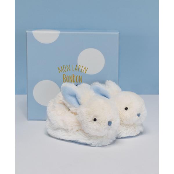 Doudou Dárková sada – Sada botiček s chrastítky králíček modrý 0-6 měsíců