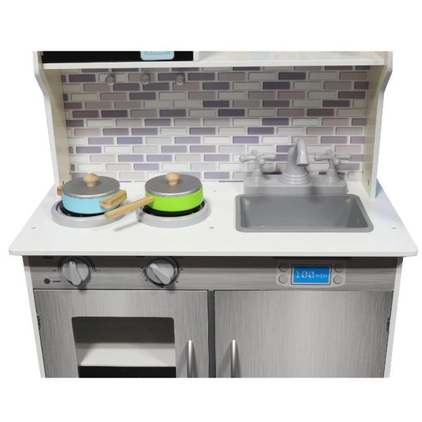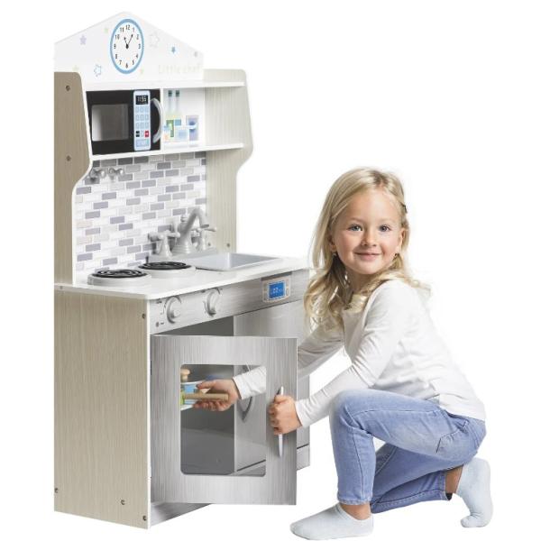 -46%Dřevěná kuchyňka v šedém designu udělá radost každé malé hospodyňce. Hraní u dětí rozvíjí kreativitu a představivost. Kuchyňka je vyrobena z kvalitního dřeva. Vybavena je troubou se sporákem, mikrovlnnou troubou, dřezem, nádobím, pračkou a hodinami. …