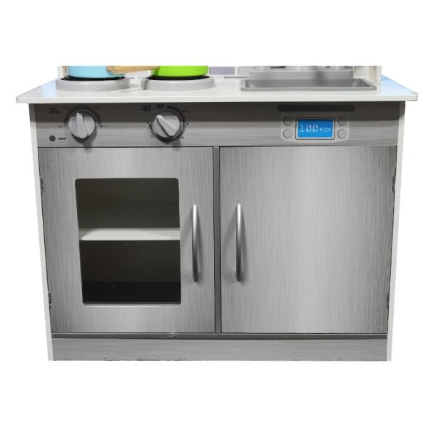 Dřevěná kuchyňka v šedém designu udělá radost každé malé hospodyňce. Hraní u dětí rozvíjí kreativitu a představivost. Kuchyňka je vyrobena z kvalitního dřeva. Vybavena je troubou se sporákem, mikrovlnnou troubou, dřezem, nádobím, pračkou a hodinami. Výška pracovní desky je 44 cm. Už se také těšíte na ty báječné dobroty, co vám vaše malá pomocnice připraví? Klíčové vlastnosti šedé dřevěné kuchyňky Vyrobeno z kvalitního dřeva Rozvíjí kreativitu a představivost Dřevěná kuchyňka s pračkou je vhodná pro děti od 3 let Potěší všechny malé hospodyňky Výška pracovní desky je 44 cm V šedém provedení Rozměry: 60 × 93 × 30 cm Rozměry balení cca 32,5 x 68 x 14 cm. Věk 3+