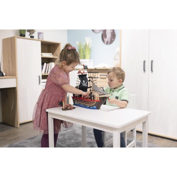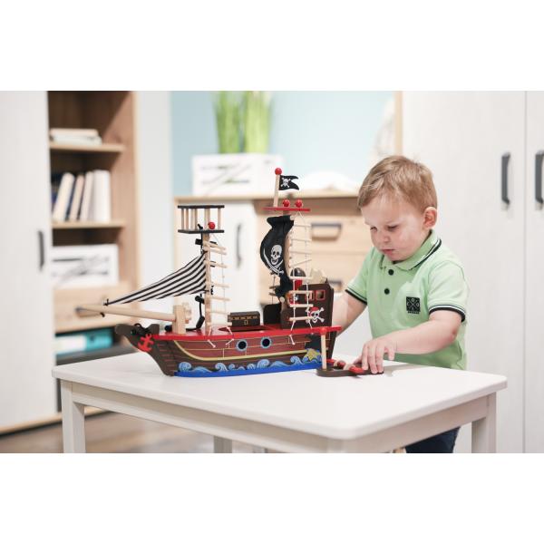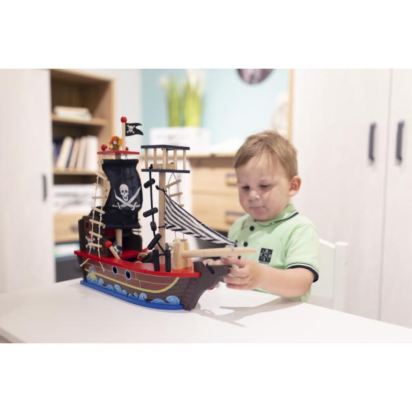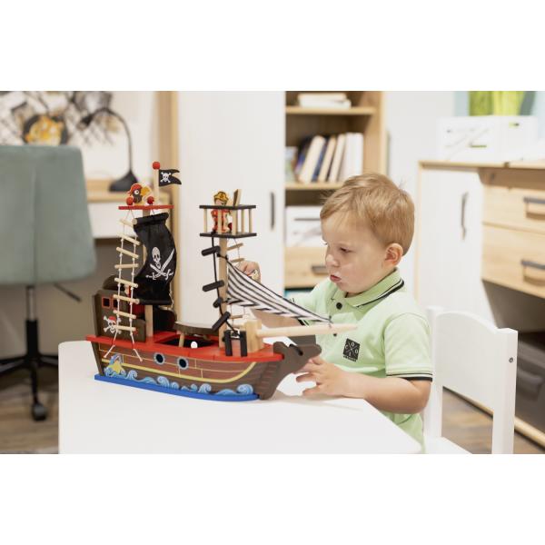 Nastupte na palubu zábavy Dřevěná pirátská loď, která vypráví mnoho příběhů a je zdrojem nekonečné zábavy, se stane oblíbenou hračkou i vašeho malého piráta. Loď je ideálním prostředkem k podpoře rozvoje vašeho dítěte. Díky bezpečným netoxickým barvám a krásným detailům a zpracování je vhodná pro děti od 3 let. Vyrobená z kvalitního dřeva nabízí nejen zábavu, ale také možnost využití jako dekorace. Podporuje dětskou představivost a rozvoj s hodinami poutavé zábavy Pirátská loď podporuje rozvoj jemné motoriky, představivosti a fantazie dítěte. Díky koordinaci ruka-oko, která je potřebná během hry, se posiluje jeho schopnost komunikovat a sebedůvěra. S touto lodí má dítě v balení vše, co potřebuje pro dobrodružnou hru s piráty. Nepřetržitá zábava s touto pirátskou lodí poskytne rodičům i čas pro sebe, zatímco se jejich dítě ponoří do světa pirátů a objevování. Vytvořte svému dítěti prostor pro rozvoj s touto fascinující dřevěnou pirátskou lodí! – Vhodné pro děti od 3 let – Dřevěné figurky jsou součástí balení – Hodiny zábavy – Rozvíjí motorické dovednosti, koordinaci ruka-oko a představivost – Vyrobeno z odolného dřeva a barev na vodní bázi – Kompaktní velikost (43 × 39 cm) – Skvělý tip na dárek