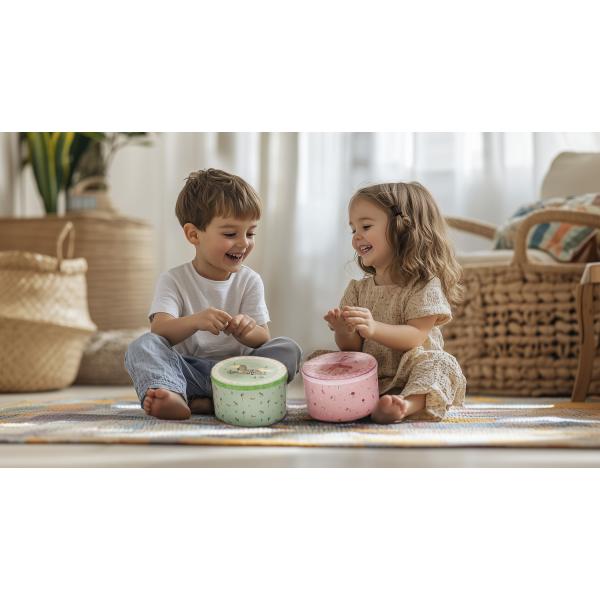 Tento bubínek není jen obyčejná hračka – jde o edukační hudební nástroj, který napomáhá vývoji hrubé i jemné motoriky, vnímání rytmu a smyslového objevování. Hra na bubínek posiluje sebevyjádření, kreativitu a dětskou radost z objevování zvuků – to vše v duchu montessori přístupu, který podporuje přirozený vývoj dítěte.