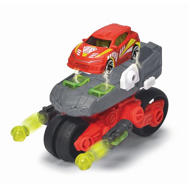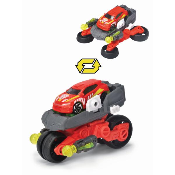 Skládací vůz transformer 2 v 1 – motocykl a dron je hlídkou na zemi i ve vzduchu a zajišťuje bezpečnost ve městě. Jediným pohybem se bleskově rychlý motocykl přemění na drona. Včetně kovového autíčka (7,5 cm) na palubě, které lze připevnit a složit pomocí klipsu. Auto lze ručně přeměnit na robota. Aby se hybridní vozidlo ubránilo blížícím se útočníkům, má 2 střelná ramena, která lze ovládat ručně, a to i na zemi nebo ve vzduchu. Zařízení do auta a střely jsou kompatibilní s jinými vozidly nebo upínacími bloky. V měřítku 1:64. Výška 12 cm. Pro děti od 5 let