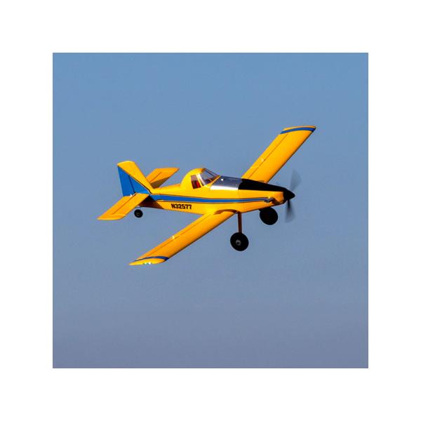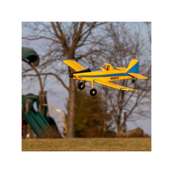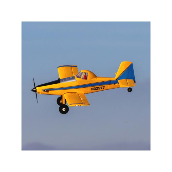 Speciálně vyladěný střídavý motor s 3-listou vrtulí má skvělý výkon pro sportovní i akrobatické létání. Napájení je volitelné baterií LiPol 2S 7.4 V nebo 3S 11.1 V s kapacitou 280 mAh – 300 mAh s konektorem JST-RCY. Při použití LiPol 3S baterie budete mít k dispozici větší výkon a to bez nutnosti jakýchkoli úprav nebo nastavení. Funkční vztlakové klapky zlepšují ovladatelnost při nízké rychlosti a zároveň nabízejí schopnosti krátkého vzletu a přistání (STOL). Díky malým rozměrům modelu s ním můžete létat na menších prostorách, navíc velké pneumatiky kol umožňují vzlétat na méně kvalitních vzletových plochách. Hotové zbarvení povrchu modelu nabízí vynikající viditelnost spolu s nápadným vzhledem, který je zdůrazněn LED navigačními, stroboskopickými a přistávacími světly. Model je kompletně sestaven a připraven k letu hned po vybalení z krabice, navíc tato přepravní krabice má rukojeť, takže je ideální pro bezpečné a pohodlné skladování a přepravu modelu. E-flite UMX Air Tractor přináší jedinečný zážitek z létání pro širokou škálu pilotů!
