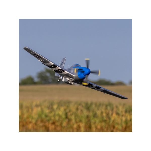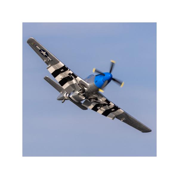 Model E-flite® P-51D Mustang 1.2m má realistické zpracování, přesné tvary, 4-listou vrtuli jako velký vzor, kokpit s pilotem a přístrojovou deskou, maketové panely potahu a maketovou kamufláž “Cripes A’Mighty 3rd”. Nyní můžete mít i více výkonu při použití až 4-článkové LiPol baterie! Střídavý pohon nevyžaduje žádné nastavení. Nadstandardní vybavení funkčními vztlakovými klapkami a elektrickým zatahovacím podvozkem podstatně zvyšuje možnosti využití a v letu navíc vypadá jako skutečné letadlo. Střídavý regulátor 70A Spektrum Avian™ Smart Lite poskytuje v reálném čase napětí baterie, proud, otáčky a další data prostřednictvím kompatibilních vysílačů Spektrum.
