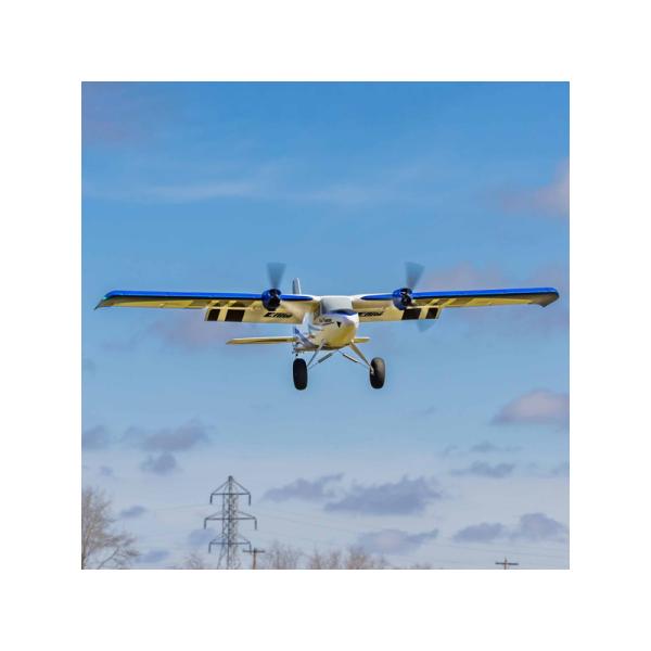 E-flite Twin Timber přebral všechny oblíbené funkce z předchozích modelů Timber, jako podvozek tlumící nárazy s nadměrně velkými koly ve stylu Tundra, volitelné použití slotů na náběžné hrany, funkční vztlakové klapky a LED osvětlení s přistávacími, navigačními a blikajícími světly. Twin Timber 1,6 m má také velký horní kryt pro rychlou a snadnou výměnu baterie. Navíc je vybaven dosud nejsilnějším podvozkem nainstalovaným na modelu Timber, který zlepšuje odolnost a schopnost STOL při létání z nerovného terénu! Efektivní dva střídavé motory jsou kompatibilní s 3S a 4S LiPol bateriemi a jsou připojeny k exkluzivnímu duálnímu regulátoru 40A Spektrum™ Avian™ Dual Smart, který může navíc poskytovat řadu telemetrických dat energetického systému v reálném čase s bateriemi SMART i běžnými bateriemi, prostřednictvím kompatibilních přijímačů a vysílačů Spektrum, vybavených Spektrum AirWare™.