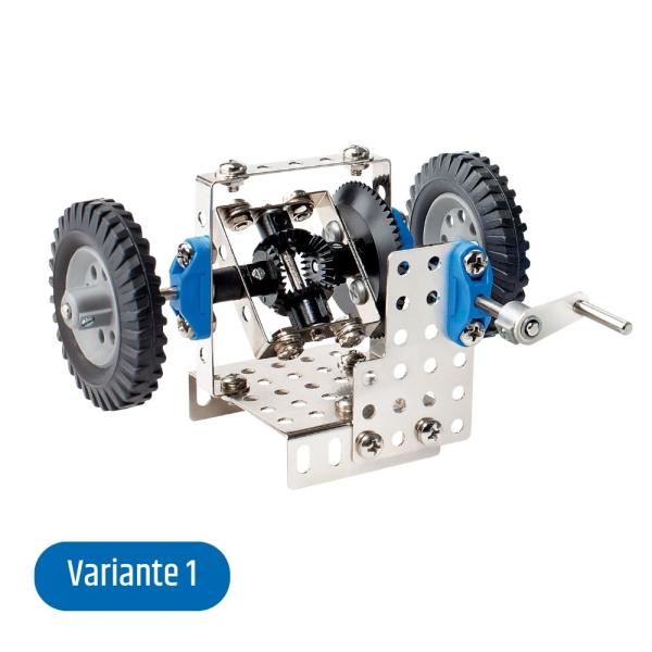 Kovová stavebnice Eitech 00007 obsahuje všechny díly potřebné k sestavení minimálně šesti modelů. Děti si mohou postavit různé převodové mechanismy – diferenciál, pilu, hodiny, kladivový mechanismus, generátor a ozubené kolo. Hravou formou tak získají představu o fungování různých typů převodů.Set obsahuje 220 dílků včetně nástrojů, motoru a přepínatelné bateriové skříňky.Obsah balení• Více než 220 dílků z pozinkované oceli a plastu• Montážní nástroje (klíč a šroubovák)• Ilustrovaný návod na sestavení minimálně tří různých modelůVýhody• Rozvoj technického myšlení: Stavění modelů podporuje logické a technické myšlení dětí.• Zlepšení motorických dovedností: Manipulace s malými dílky a nástroji pomáhá rozvíjet jemnou motoriku.• Kreativita a flexibilita: Možnost postavit různé modely z jednoho setu stimuluje kreativitu a představivost.• Vysoká kvalita: Dílky jsou vyrobeny z kvalitních materiálů, což zaručuje dlouhou životnost modelů.Obtížnost: začátečník