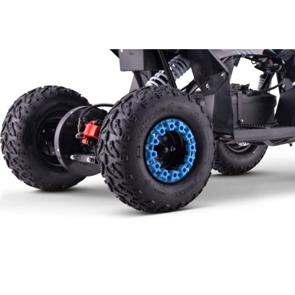 Prevrácená vidlice a nastavitelné zadní tlumiče poskytují optimální komfort na těžkých terénech, zatímco jeho ocelový rám zaručuje odolnost za všech podmínek. S baterií 48V (4X 12V12Ah) tento elektrický quad nabízí přibližně 1 hodinu nepřetržité jízdy, což umožňuje dětem užívat si jízdu bez přerušení.