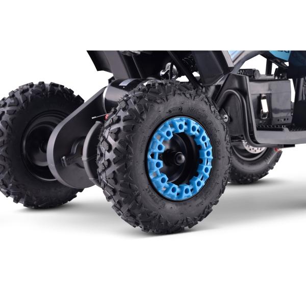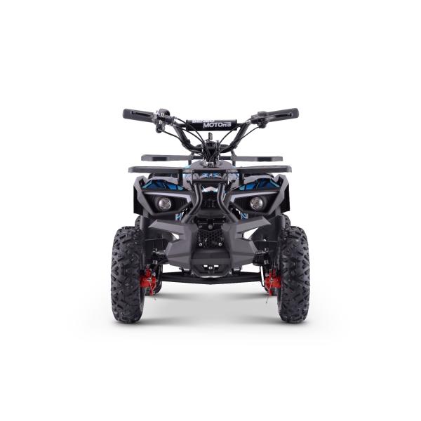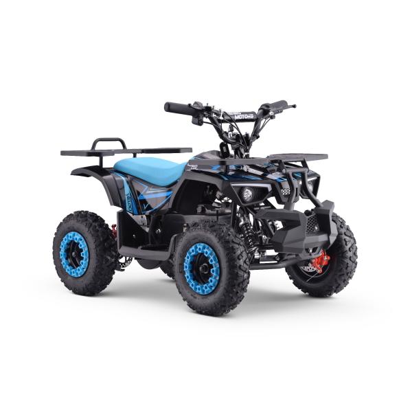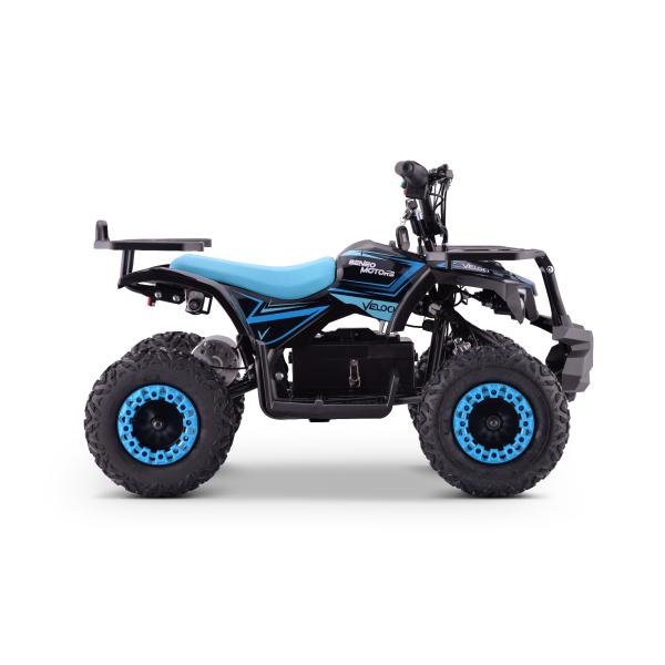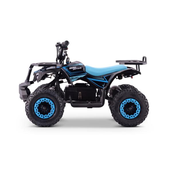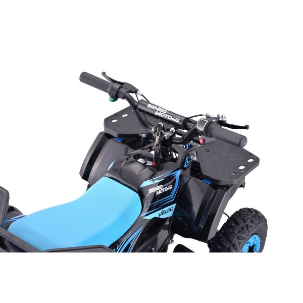Beneo Motors Quad Veloci 800W Věková hranice: od 3 let 36V baterie Představujeme Beneo Motors Veloci – Ideální čtyřkolka pro děti od 3 do 6 let se všemi bezpečnostními prvky: 3-polohový omezovač rychlosti (5-15-25 km/h), kotoučové brzdy, bezpečnostní kryt řetězu. 1. Bezpečnost na prvním místě! Bezpečnost je pro nás na prvním místě, a proto je tento model vybaven pevným a odolným rámem, širokým rozměrem kol s nízkým těžištěm, aby se předešlo převrácení, nastavitelného omezovače rychlosti a spolehlivými brzdovými systémy. 3-polohový omezovač rychlosti (5-15-25 km/h) Žádný zápach z výfuků, žádný hluk v porovnání s benzínovými offroady. 2. Ostrý, stylový design Se svým ostrým sportovním designem Veloci nevypadá vůbec dětsky. Je navržen tak, aby vynikal profesionálním vzhledem, podobně jako dospělé profesionální čtyřkolky. Jeho elegantní povrchová úprava ho dělá ideálním quad pro mladé, méně zkušené děti. 3. Uživatelsky přívětivá, snadno ovladatelná S elektrickým pohonem je tento malý quad velmi svižný, obratný a snadno ovladatelný. Díky předním a zadním kotoučovým brzdám poskytuje rychlé a efektivní brzdění! 6-palcová kola poskytují velmi dobrou manévrovatelnost a stabilitu. Vhodné i pro úplné začátečníky už od 3 let. 4. Snadná obsluha a údržba Jelikož se jedná o čistě elektrický pohon, z technického hlediska tento model nevyžaduje téměř žádnou údržbu. Stačí nabít baterii, zkontrolovat brzdový systém a pneumatiky a čtyřkolka je připravena na jízdu. Doba nabíjení se odhaduje na 5 hodin při výdrži baterie 1h 30min v závislosti na zátěži a terénu. Extra výbava: Vysokokvalitní odpružení s tlumiči Přední LED reflektory pro jízdu ve tmě Automatická převodovka se zpětným chodem Parkovací brzda Aktivní zadní brzdové světlo Tři nastavitelné rychlosti Klakson Chránič řetězu Přední a zadní nosiče Tento model je ideální zejména pro méně zkušené jezdce. Je to silné a stylové ATV, které vytváří zaručený zážitek z jízdy v terénu pro děti.