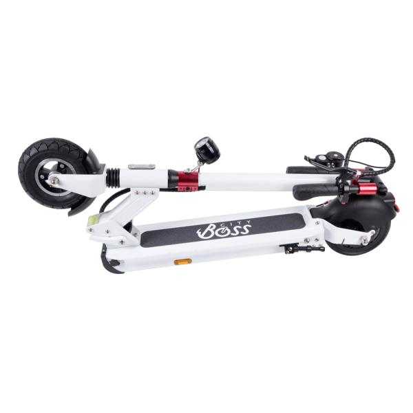 Elektrický koloběžka splňuje technické požadavky normy Evropské unie EN 17128. S bezpečným skládacím mechanismem ji složíte či rozložíte do 5 sekund a při hmotnosti 17,3 kg ji lehce převezete autem, vlakem, MHD nebo uskladníte doma či v garáži. Bezúdržbový motor s ohromujícím výkonem 500 W svižně zrychlí i při zatížení 100 kg a vyveze vás i do prudšího kopce. Tlačítkem na displeji můžete přepínat mezi 3 režimy pro omezení max. rychlosti. Při delších cestách oceníte tempomat, který udržuje výkon koloběžky i bez stlačeného plynu – jeho funkci je možné případně deaktivovat na displeji. Baterii Li-Ion 13 Ah dobijete přenosnou nabíječkou ze zásuvky 220 V na plnou kapacitu za 5-7 hodin. Při běžné prevádce s koloběžkou na jedno nabití ujedete až 35 km – při kratších cestách ji tak nemusíte pokaždé dobíjet. Celková vzdálenost může být kratší i delší; vždy závisí na hmotnosti jezdce, členitosti terénu, stylu jízdy, vnější teplotě a pod. Nuceně je možné na koloběžce dojít odstrkováním i s vypnutým motorem. Na transreflexním displeji skvěle čitelným i na přímém slunci či v noci můžete sledovat aktuální stav baterie, aktuální rychlost, dobu jízdy a ujetou vzdálenost. USB port zezadu displeje má funkci powerbanky. Je možné přes něj nabíjet váš mobilní telefon či tablet, a to buď za jízdy nebo při stojící koloběžce pomocí 2-hodinového časovače. S kovovým světlem s výkonem 400 lumenů a dosvitem 10 metrů už nebudete potřebovat žádné dodatečné osvětlení ani při vyšší rychlosti. Přední i zadní světlo napájené z centrální baterie zapnete spínačem na řídítkách, kde je umístěno i tlačítko houkačky. Koloběžku zastavíte zadní kotoučovou brzdou. Rám koloběžky z leteckého hliníku zvládne zatížení až 120 kg. S výškově nastavitelnými řídítky s ergonomickými gripy je koloběžka vhodná pro jezdce s postavou 150 – 210 cm. Z důvodu bezpečnosti je doporučený věk na používání koloběžky od 16 let. Na 48 cm dlouhém a 15 cm širokém nášlapu se pohodlně vezete s chodidly za sebou. Pneumatiky s průměrem 8″ (přední nafukovací, zadní pevné) lehce překonají i drobné nerovnosti. Odolný přední a zadní tlumič snižuje nepříjemné vibrace během jízdy. Kola jsou chráněna blatníky. Elektrická koloběžka City Boss naplňuje novou vizi ekologického světa. Vybavená špičkovou technologií promění každou jízdu městem na nevšední zážitek!Parametry: