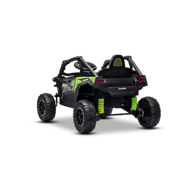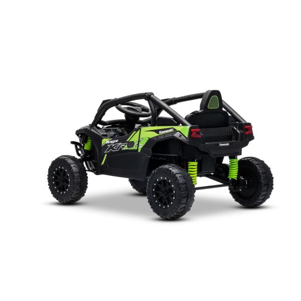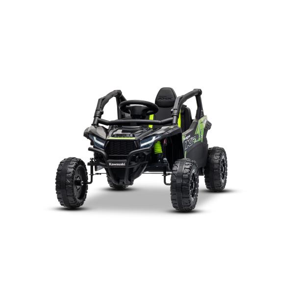 Licencované elektrické autíčko Kawasaki TERYX KRX 1000 12V! NOVINKA: Lehká lithium-iontová baterie (12V4AH) Nosnost až do 30 Kg. Licencované elektrické autíčko Kawasaki KRX1000 přináší realistický vzhled skutečného terénního čtyřkolového vozidla, sportovní rám roll-cage, výrazná přední LED světla a kvalitní zpracování. Model je jednomístný, ideální pro jedno dítě s nosností až 30 kg. Díky lehké lithium-iontové baterii 12V4Ah, dvěma motorům 2 × 25 W, plynulému rozjezdu a kvalitnímu zadnímu odpružení je vhodný na jízdu po zpevněných i mírně náročnějších površích. 2,4Ghz Dálkové ovládání s možností nastavení rychlostí a nouzovou brzdou Zadní odpružení Jednomístné sedadlo s bezpečnostním pásem 2x25W motory Ovládání a bezpečnost Rodiče mají úplnou kontrolu díky 2.4 GHz dálkovému ovladači s plynulým ovládáním rychlosti a bezpečnostní funkcí STOP. Dítě může jezdit manuálně, nebo můžeš kdykoliv převzít řízení na dálku. 3-bodový bezpečnostní pás udrží dítě stabilně při jízdě. Autíčko je vybaveno svítícími předními LED světly a na volantu nechybí tlačítka pro efektní houkačku a hudbu. Součástí výbavy je také moderní MP3 přehrávač se vstupy USB/AUX, ovládáním hlasitosti a praktickým indikátorem stavu baterie. One Button Start zajišťuje jednoduché startování jediným tlačítkem. Pohon poskytuje 3–6 km/h rychlost jízdy, což je vhodné i pro méně zkušené jezdce. Plynulé zrychlení – Po sešlápnutí pedálu se autíčko rozjede elektronicky řízeným způsobem bez trhání. Rozjezd je tak komfortní a bezpečný. Výborným doplňkem je přepínač mezi manuálním a dálkovým ovládáním. Rodič může kdykoliv převzít kontrolu, včetně nouzového zastavení. Vhodné i pro menší děti – díky nižší rychlosti a plynulému rozjezdu!!! Balení obsahuje: adaptér s indikátorem nabíjení lithium-iontovou baterii dálkový ovladač samotné autíčko Příslušenství na skládání a návod