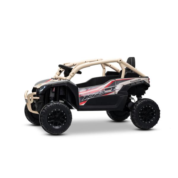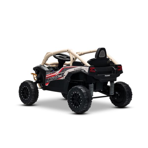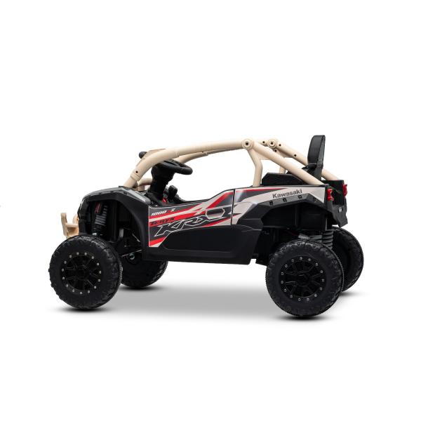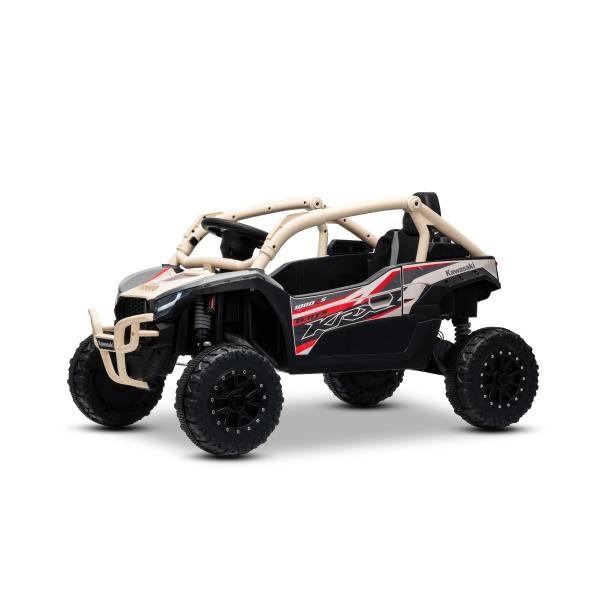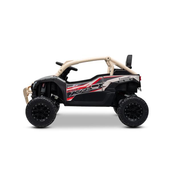 Licencované elektrické autíčko Kawasaki TERYX KRX 1000 12V! NOVINKA: Lehké lithium-iontová baterie (12V4AH) Nosnost až do 30 Kg. Licencované elektrické autíčko Kawasaki KRX1000 přináší realistický vzhled skutečného terénního čtyřkolového vozidla, sportovní rám roll-cage, výrazná přední LED světla a kvalitní zpracování. Model je jednomístný, ideální pro jedno dítě s nosností až 30 kg. Díky lehké lithium-iontové baterii 12V4Ah, dvěma motorům 2 × 25 W, plynulému rozjezdu a kvalitnímu zadnímu odpružení je vhodný na jízdu po zpevněných i mírně náročnějších površích. 2,4Ghz Diaľkové ovládání s možností nastavení rychlostí a nouzovou brzdou Zadní odpružení Jednomístné sedadlo s bezpečnostním pásem 2x25W motory Ovládání a bezpečnost Rodiče mají úplnou kontrolu díky 2.4 GHz dálkovému ovladači s plynulým ovládáním rychlosti a bezpečnostní funkcí STOP. Dítě může jezdit manuálně, nebo můžeš kdykoliv převzít řízení na dálku. 3-bodový bezpečnostní pás udrží dítě stabilně při jízdě. Autíčko je vybaveno svítícími předními LED světly a na volantu nechybí tlačítka pro efektní houkačku a hudbu. Součástí výbavy je také moderní MP3 přehrávač se vstupy USB/AUX, ovládáním hlasitosti a praktickým indikátorem stavu baterie. One Button Start zajišťuje jednoduché startování jediným tlačítkem. Pohon poskytuje 3–6 km/h rychlost jízdy, což je vhodné i pro méně zkušené jezdce. Plynulé zrychlení – Po sešlápnutí pedálu se autíčko rozjede elektronicky řízeným způsobem bez trhání. Rozjezd je tak komfortní a bezpečný. Výborným doplňkem je přepínač mezi manuálním a dálkovým ovládáním. Rodič může kdykoliv převzít kontrolu, včetně nouzového zastavení. Vhodné i pro menší děti – díky nižší rychlosti a plynulému rozjezdu!!! Balení obsahuje: adaptér s indikátorem nabíjení lithium-iontovou baterii dálkový ovladač samotné autíčko Příslušenství na skládání a návod