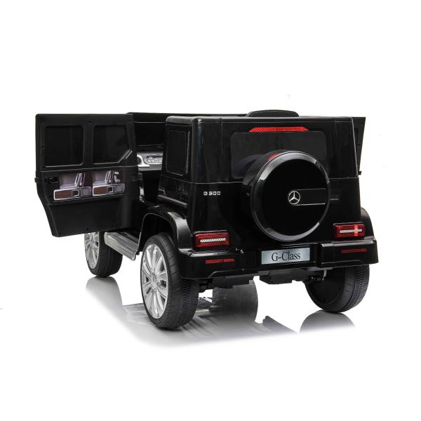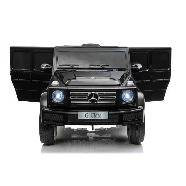 Licencované elektrické autíčko Mercedes G500 12V s lithium baterií (12V/4Ah) Dokonalé elektrické autíčko s luxusním vzhledem. Po zapnutí model imituje zvuk startování, svítí přední LED světla. Zvukové efekty jako: klakson, start motoru, zvuk jízdy, písničky, melodie, vstup na SD kartu a USB nechybí z výbavy. Hlasitost všech zvukových efektů se ovládá mp3 přehrávačem. Autíčko má 2,4 GHz dálkové ovládání nové generace, osvětlený spínač startování. Nouzová brzda na dálkovém ovládání zajistí plnohodnotnou kontrolu auta a stlačením tlačítka vypíná všechny funkce. Auto má pohon obou zadních kol. Elektrická parkovací brzda. Imitace tachometru. Multifunkční volant s tlačítky klaksonu a přepínání skladeb. Dvě rychlosti vpřed – pomalá a rychlá, 1 rychlost vzad. Možnost nastavování rychlosti jízdy i na dálkovém ovládání. Plynulé zrychlení – Po sešlápnutí plynového pedálu se autíčko rozjede, přičemž je rozjezd řízen elektronicky tak, aby byl plynulý díky integrovanému plynulému zrychlení. Díky tomu při sešlápnutí pedálu nedochází k nepříjemnému trhnutí při rozjezdu. Zadní náprava je vybavena odpružením pro pohodlnou jízdu. Lithium baterie (12V4AH): Dlouhá životnost – Vydrží více nabíjecích cyklů. Vysoká kapacita – Jsou lehké a výkonné. Rychlé nabíjení – Nabíjejí se rychle a pomalu se vybíjejí. Pro větší bezpečnost dětí je na sedačce nastavitelný bezpečnostní pás, díky širokému otevření dveří je snadné nastupování a vystupování z autíčka.