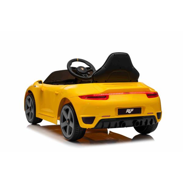 Licencované elektrické autíčko RUF GT 12V NOVINKA: Lítiová baterie (10.8V / 5Ah) Sportovní ikona v dětském provedení – RUF GT přináší kombinaci stylového sportovního designu a moderní technologie. Realistický vzhled doplňují funkce jako MP3 přehrávač s USB vstupem a ukazatelem stavu baterie, přičemž všechny zvukové efekty je možné ovládat přímo na přehrávači. Nechybí LED osvětlení a jednoduché ovládání přes multifunkční volant. Multifunkční volant – S tlačítky na klakson a přepínání hudby. Podsvícený palubní panel – Se sportovní grafikou Otevírací dveře – Pro snadný přístup Autíčko je vybaveno 2.4 GHz dálkovým ovládáním s funkcí nouzového zastavení pro maximální bezpečnost. Ovladač umožňuje rodičům plnou kontrolu během jízdy. Bezpečnostní pás zaručuje vyšší ochranu dítěte. Bezpečnostní pás – Pro bezpečnou jízdu Lítiová baterie (10.8V / 5Ah):