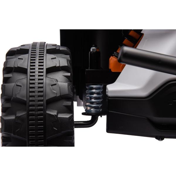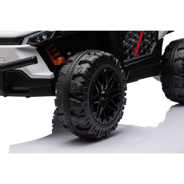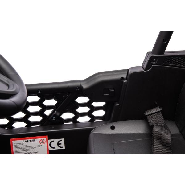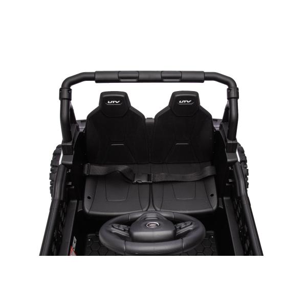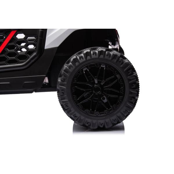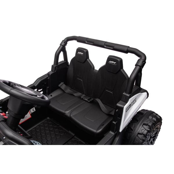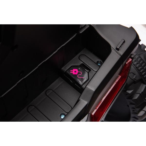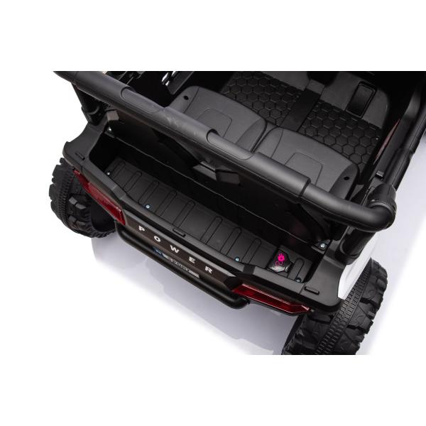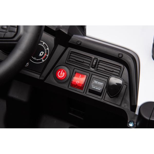 Autíčko je také vybaveno svítícími světly. Inovovaná audio jednotka s moderní hudbou, MP3 Přehrávač se vstupem USB+Aux. Pro bezpečnost dítěte je na sedačce nastavitelný bezpečnostní pás.