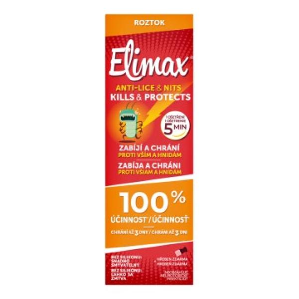 Účinný roztok Elimax zabíjí vši a hnidy a zároveň odpuzuje nové vši, čím chrání vlasy před opětovným zavšivením už při 1 ošetření.