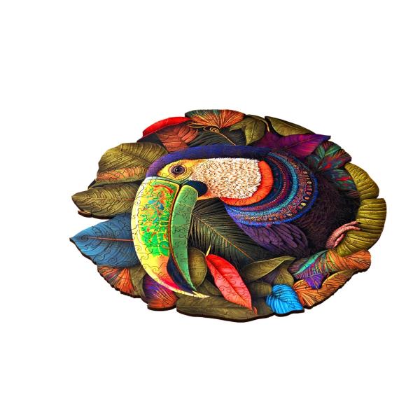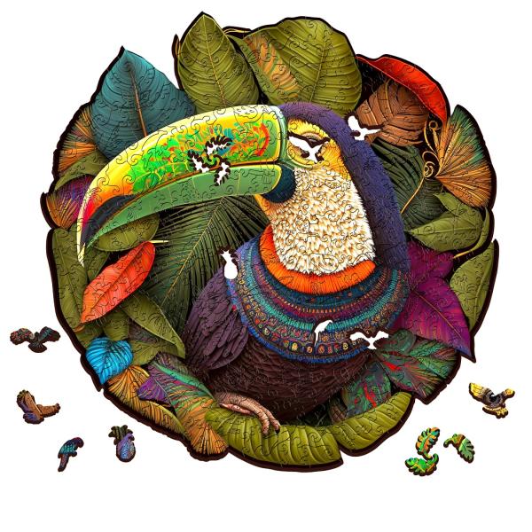 Puzzle s obrázkem tukana je unikátní dřevěné skládací puzzle, které spojuje kvalitní řemeslné zpracování s ekologicky odpovědným přístupem. Je vyrobeno z 5 mm FSC® certifikovaného dřeva, které zaručuje, že při výrobě byly dodrženy nejvyšší standardy v hospodaření s lesy, což přispívá k udržitelnosti a ochraně biodiverzity.