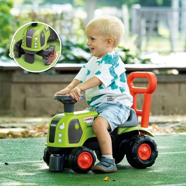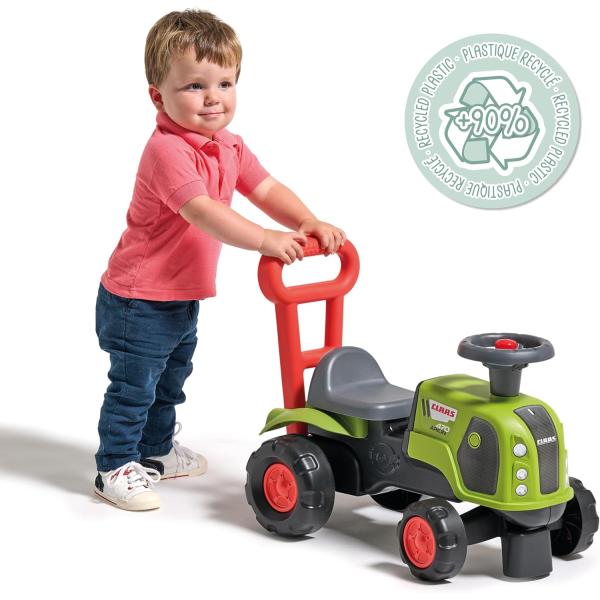 Traktor BabyClaas s volantem, klaksonem a ergonomickou pomůckou při chůzi – 100 % vyrobeno ve Francii – Obsahuje 90 % recyklovaného plastu – Od 12 měsíců.