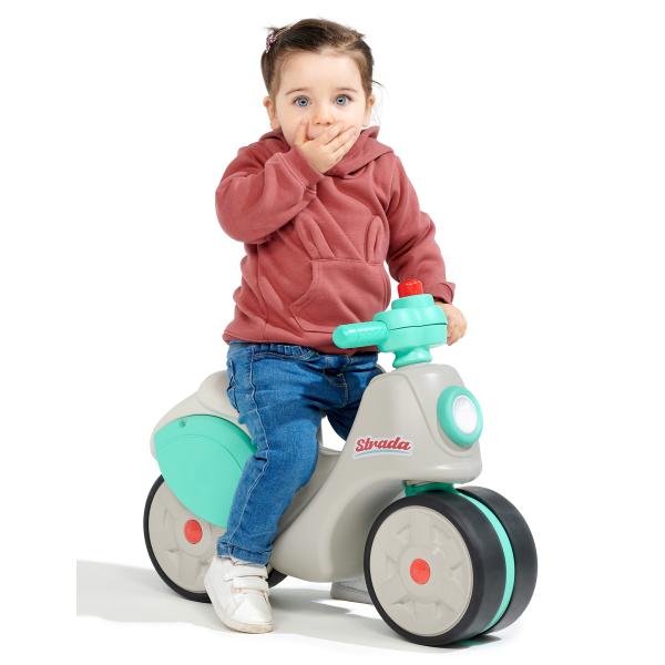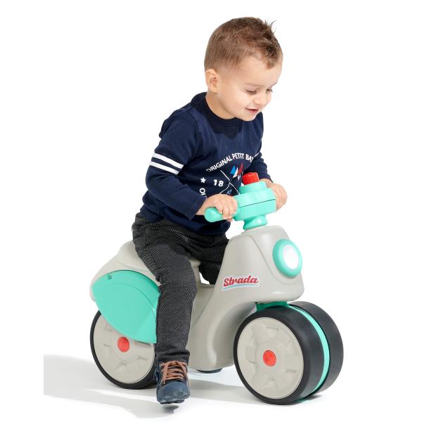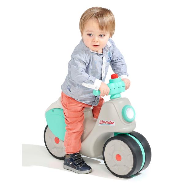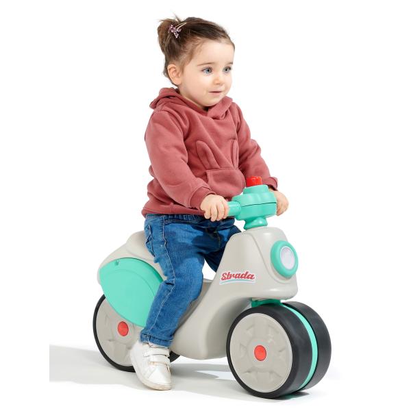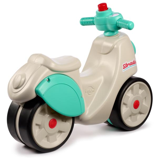S tímto odrážedlem v retro stylu se Falk podívá na svou historii aktualizací jedné ze svých vlajkových lodí ze 70. let 20. století. Nová verze dokonale zapadá do současné doby díky svým módním barvám a zpracování. Vybaveno velkými koly, které poskytují dítěti potřebnou stabilitu pro vývoj, navíc procvičuje rovnováhu a motoriku. Díky elastomernímu povlaku jsou odolnější vůči poškrábání a jinému poškození. Jízda je jako na skutečném skútru díky volantu který je malý a obsahuje klakson, který ještě více obohacuje hru dítěte. Vlastnosti: