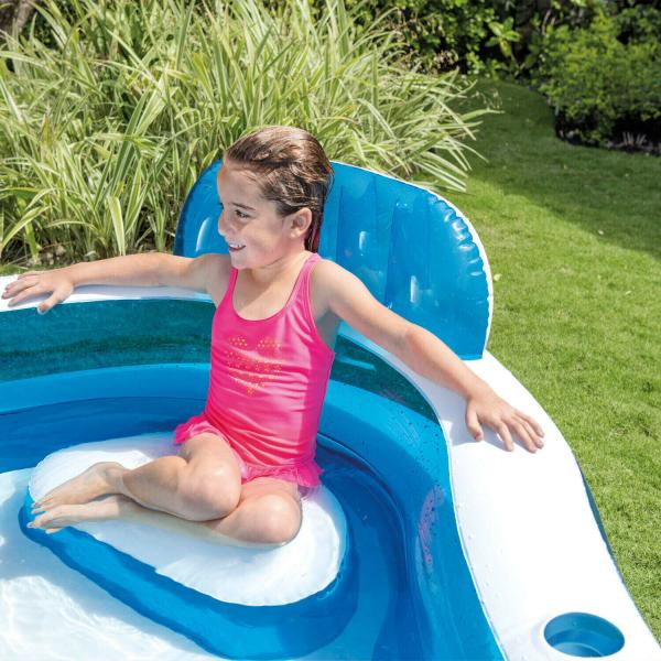Úžasná vodní zábava pro celou rodinu! Užijte si relax v tomto nafukovacím bazénu se 4 integrovanými sedáky s polštářky a záhlavníky. Včetně dvou držáků na nápoje pro ještě větší komfort při odpočinku. Pevný a odolný PVC materiál.