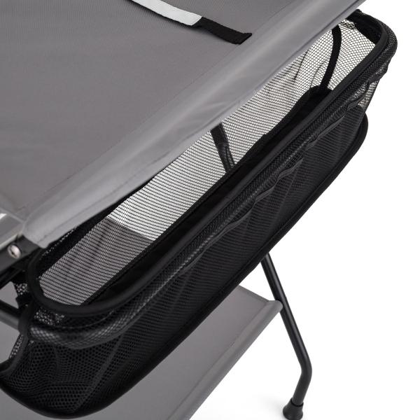 Multifunkční přebalovací pult. Je vybaven bočními přihrádkami na uskladnění a snadný přístup ke všemu, co budete při přebalování potřebovat. Pult se dá jednoduše složit a tak ušetřit místo. Konstrukce je stabilní a odolná. V dolní části se nachází praktická polička na odložení věcí.